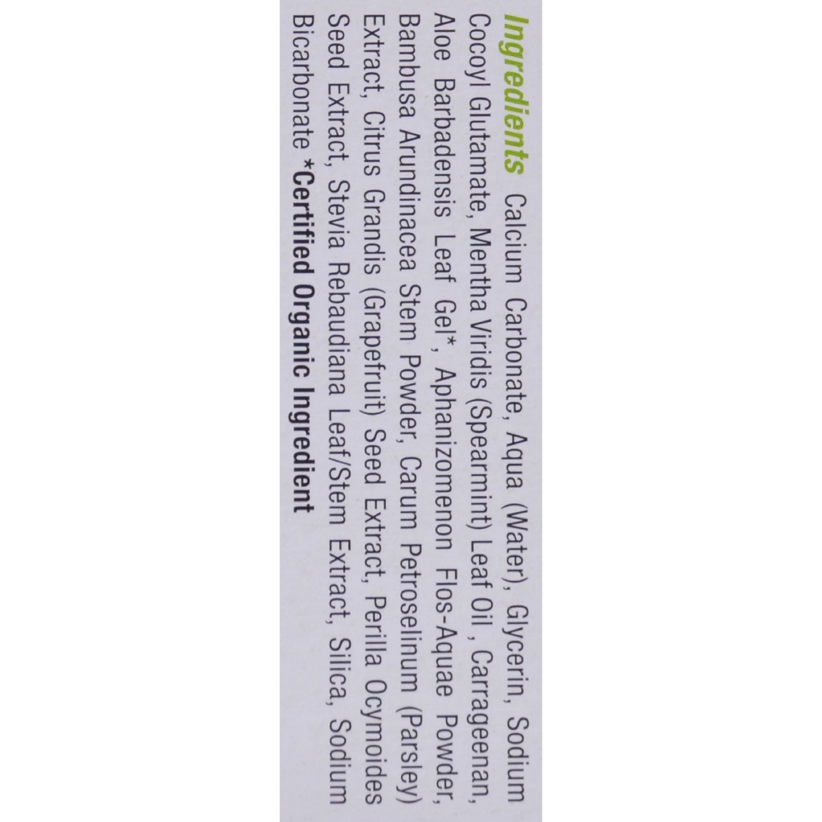 - Ingredients: CALCIUM CARBONATE;AQUA;WATER;GLYCERIN;SODIUM COCOYL GLUTAMATE;MENTHA VIRIDIS;SPEARMINT;LEAF OIL;CARRAGEENAN;ALOE BARBADENSIS LEAF JUICE⁽¹⁾;BAMBUSA ARUNDINACEA STEM POWDER;CARUM PETROSELINUM;PARSLEY;EXTRACT;CITRUS GRANDIS;GRAPEFRUIT;SEED EXTRACT;CHLORELLA PYRENOIDOSA EXTRACT;PERILLA OCYMOIDES SEED EXTRACT;STEVIA REBAUDIANA LEAF/STEM EXTRACT;SILICA;SODIUM BICARBONATE