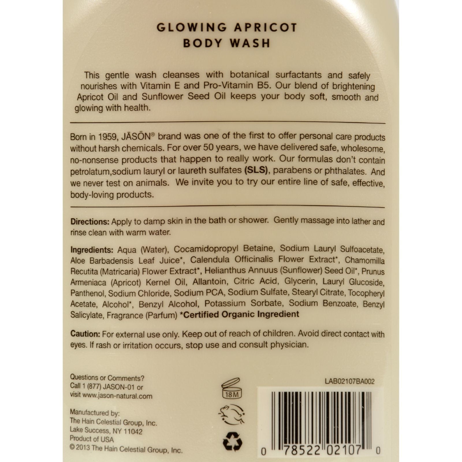 Brightens with natural apricot & sunflower seed oils. Nourishes with vitamin E and pro-vitamin B5. No parabens, SLS, petrolatum, artificial colors or phthalates. This gentle wash cleanses with botanical surfactants and safely nourishes with vitamin E and pro-vitamin B5. Our blend of brightening apricot oil and sunflower seed oil keeps your body soft, smooth and glowing with health. Born in 1959, Jason brand was one of the first to offer personal care products without harsh chemicals. For over 50 years, we have delivered safe, wholesome, no-nonsense products that happen to really work. Our formulas don't contain petrolatum, sodium lauryl or laureth sulfates (SLS), parabens or phthalates. And we never test on animals. We invite you to try our entire line of safe, effective, body-loving products. Questions or comments? Call 1 (877) Jason-01 or visit www.jason-natural.com. Product of USA.