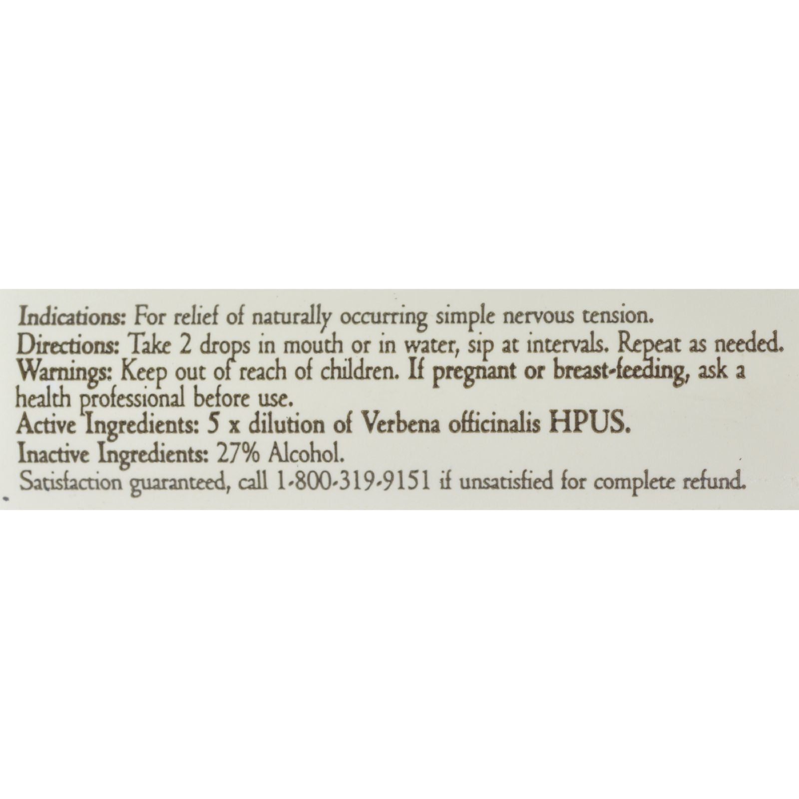 - Ingredients: 5X DILUTION OF VERVAIN;VERBENA OFFICINALIS;HPUS. 27% ALCOHOL