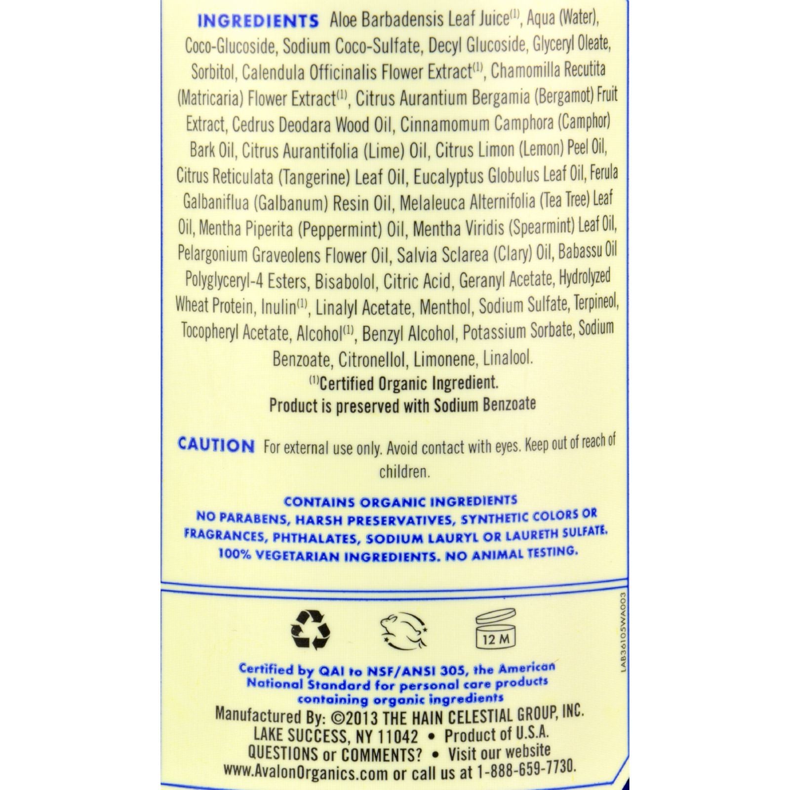 - Ingredients: ALOE BARBADENSIS JUICE⁽¹⁾;WATER (AQUA);SODIUM COCO-SULFATE;SODIUM LAURYLGLUCOSIDES HYDROXYPROPYLSULFONATE;ARGANIA SPINOSA KERNEL OIL⁽¹⁾;CEDRUS DEODARA WOOD OIL;CINNAMOMUM CAMPHOROA (CAMPHOR) BARK OIL;CITRUS AURANTIFOLIA (LIME) OIL;CITRUS RETICULATA (TANGERINE) LEAF OIL;MELALEUCA ALTERNIFOLIA (TEA TREE) LEAF OIL;MENTHA PIPERITA (PEPPERMINT) OIL;ORBIGNYA OLEIFERA (BABASSU) SEED OIL⁽¹⁾;PELARGONIUM GRAVEOLENS FLOWER OIL;SALVIA SCLAREA (CLARY) OIL;CALENDULA OFFICINALIS FLOWER EXTRACT⁽¹⁾;CHAMOMILLA RE
