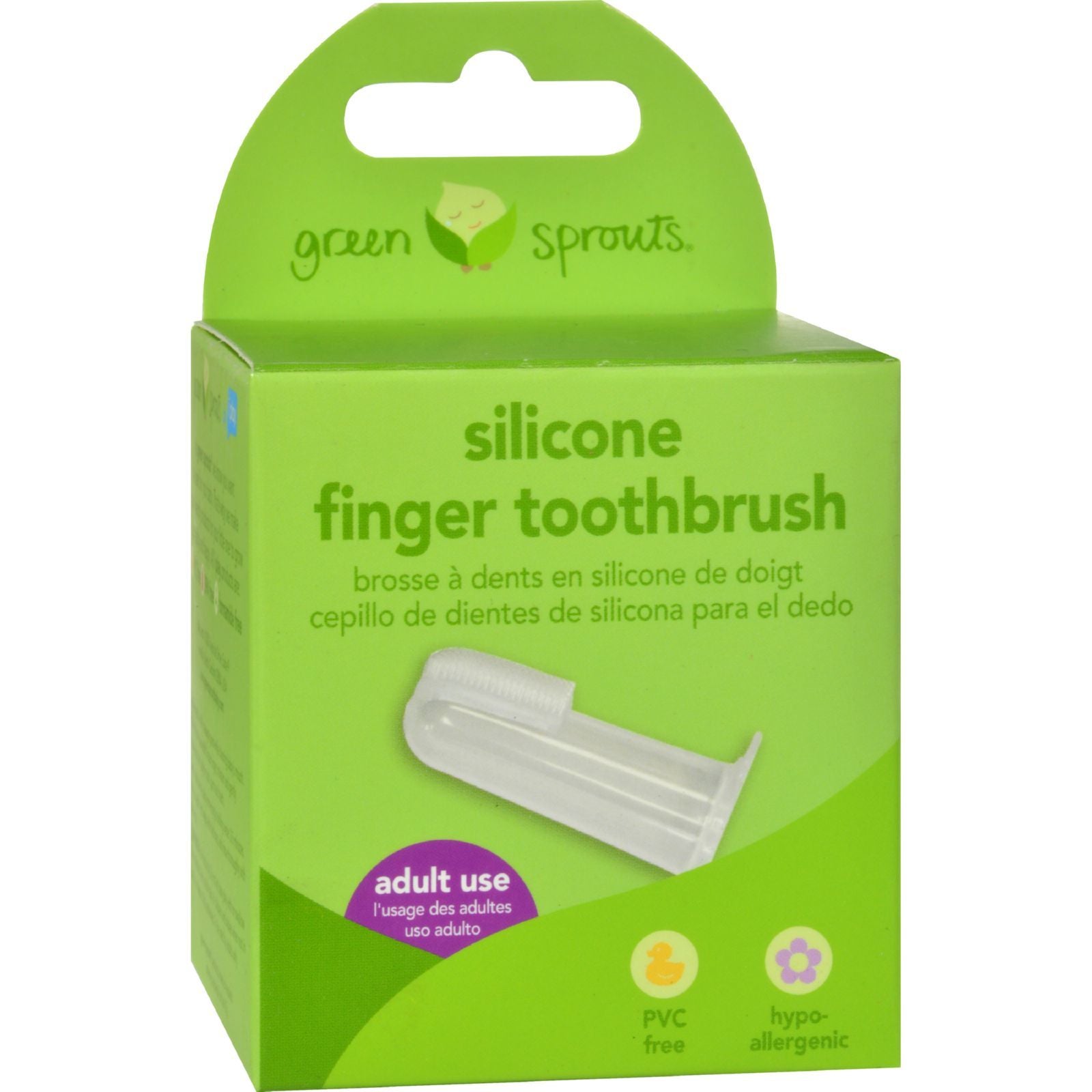 GREEN SPROUTS BABY SILICONE FINGER TOOTHBRUSH, CLEAR IS FOR ADULT USE ONLY. THIS HYPO-ALLERGENIC BABY FINGER TOOTHBRUSH IS BPA-FREE, FORMAMIDE FREE AND PVC-FREE. IT CAN BE USED TO CLEAN AND MASSAGE BABY'S GUMS AND TEETH AND FEATURES A PULL TAB AND VENT HOLE FOR EASY REMOVAL. EACH BOX CONTAINS ONE BABY SILICONE FINGER TOOTHBRUSH.