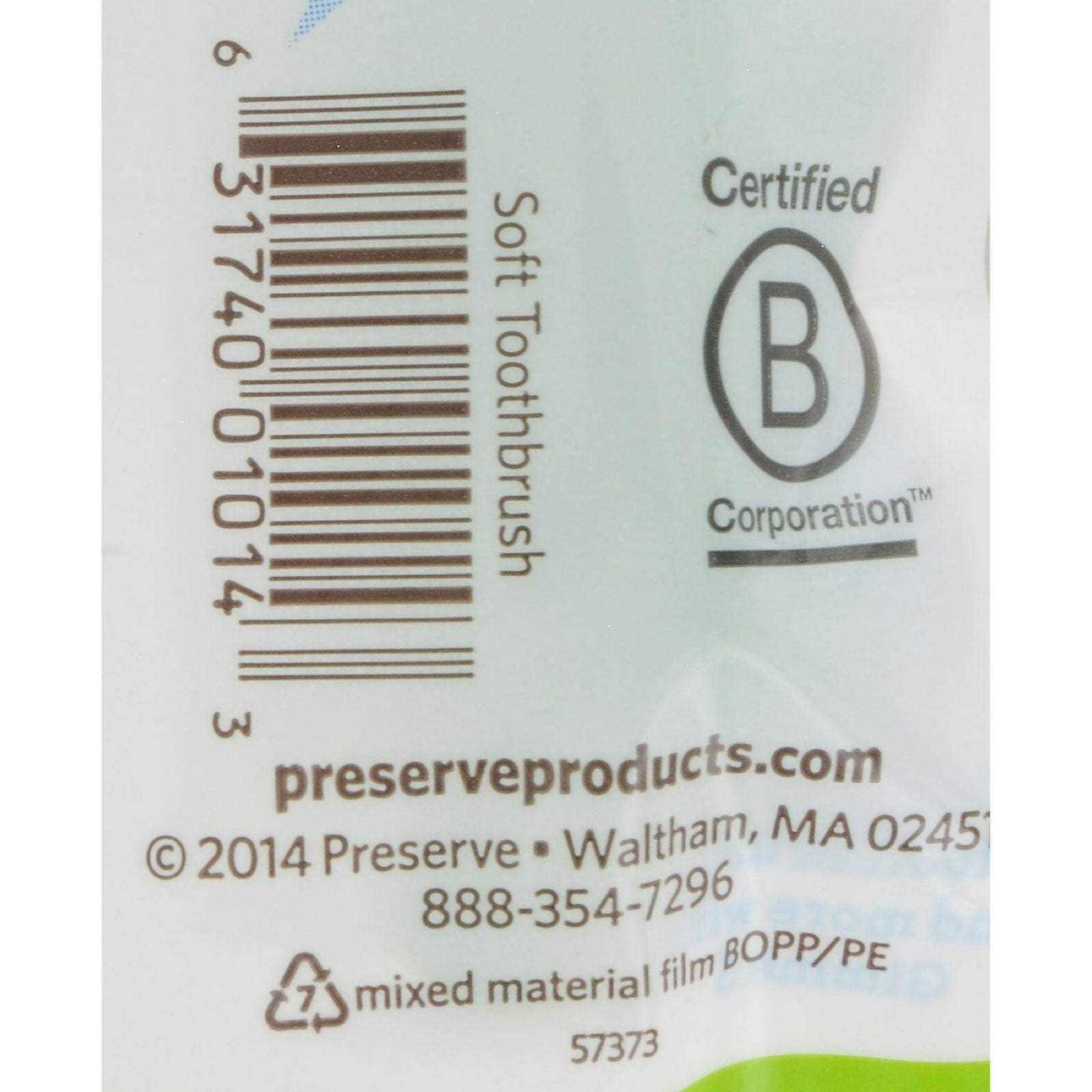 PRESERVE SOFT TOOTHBRUSH HAS A 100% RECYCLED PLASTIC HANDLE THAT'S MADE IN THE USA FROM RECYCLED YOGURT CUPS. OUR BPA-FREE TOOTHBRUSH HAS TIERED BRISTLES AND A DENTIST-DESIGNED GRIP FOR CLEANER TEETH. WE DO NOT TEST ON ANIMALS. EACH SOFT TOOTHBRUSH COMES IN A PACK OF ONE AND IS B CORPORATION CERTIFIED.