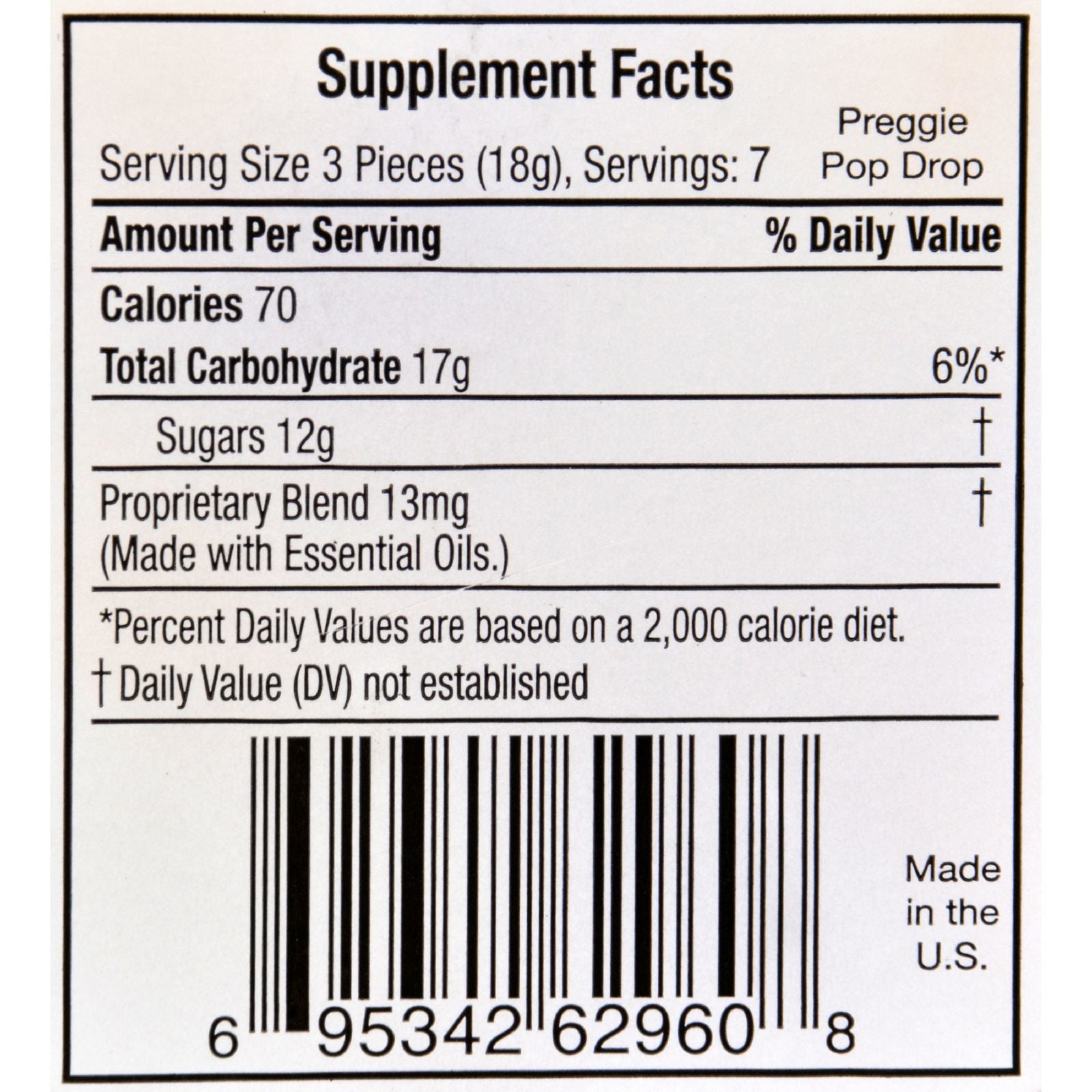 THREE LOLLIES PREGGIE POP DROPS DIETARY SUPPLEMENT OFFERS A NATURAL WAY TO EASE YOUR MORNING SICKNESS. MADE WITH PREGNANT MOTHERS IN MIND, THESE DROPS INCORPORATE ESSENTIAL OILS TO HELP RELIEVE NAUSEA SYMPTOMS. THEY COME IN FOUR TASTY FLAVORS, INCLUDING SOUR RASPBERRY, GREEN APPLE, SOUR LEMON AND SOUR TANGERINE. EACH SERVING OF THREE DROPS CONTAINS ONLY 70 CALORIES, AND THIS SUPPLEMENT IS DEVELOPED BY HEALTHCARE PROFESSIONALS. ONE PACKAGE CONTAINS 21 PREGGIE POP DROPS.