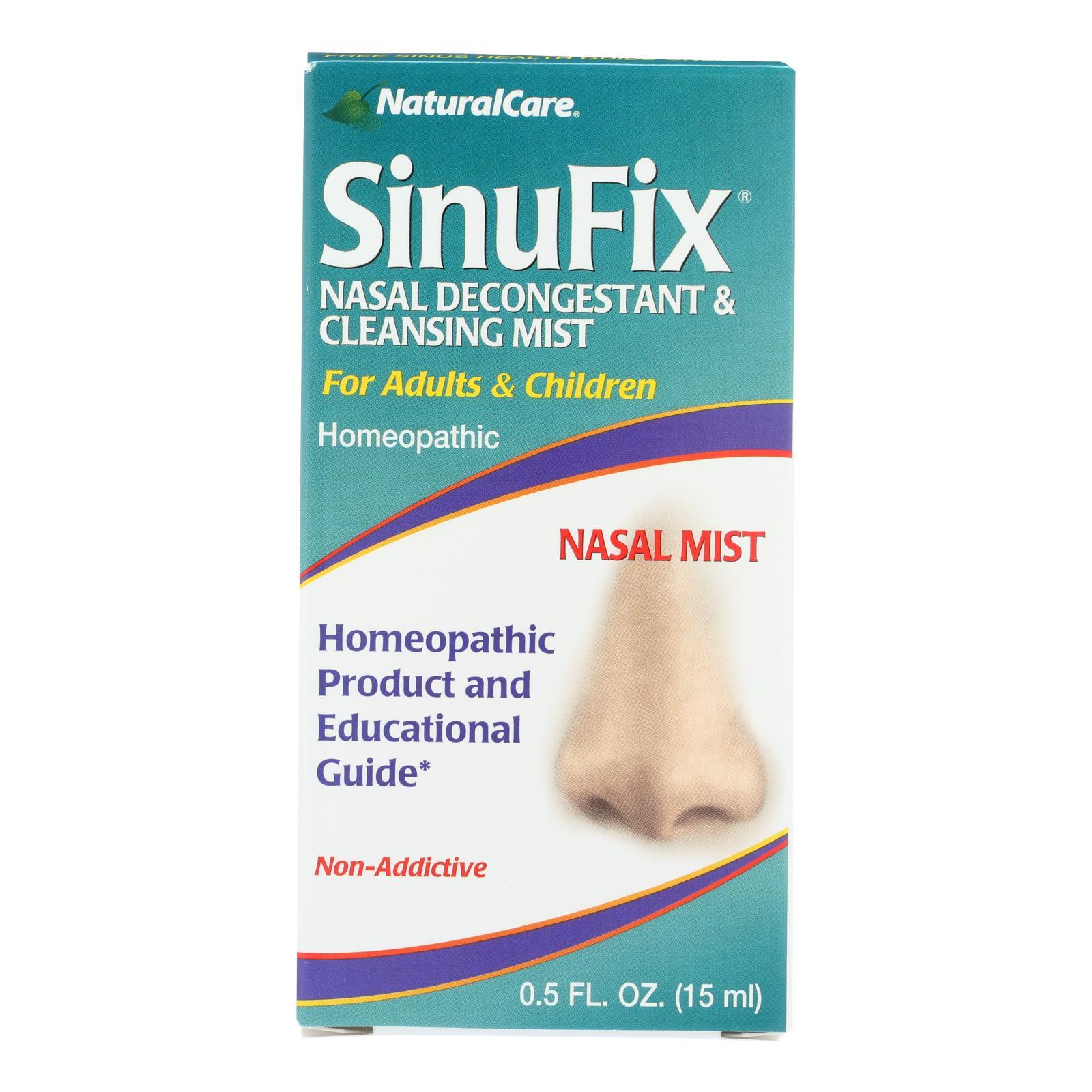 NATURALCARE SINUFIX NASAL DECONGESTANT & CLEANING MIST MAY HELP NASAL PASSAGES FEEL BETTER. NUMEROUS ACTIVE INGREDIENTS INCLUDING ALLIUM CEPA 6X AND HYDRASTIS CANADENSIS 3X, 6X ,12X MAKE UP THIS 0.5 FL. OZ. ALL-NATURAL REMEDY FOR SYMPTOMS OF NASAL CONGESTION, HAY FEVER AND SINUSITIS. A NASAL PUMP SPRAYER ADDS CONVENIENCE TO THIS LIQUID NASAL RELIEF FOR ADULTS AND CHILDREN AGE 6 YEARS OR OLDER.