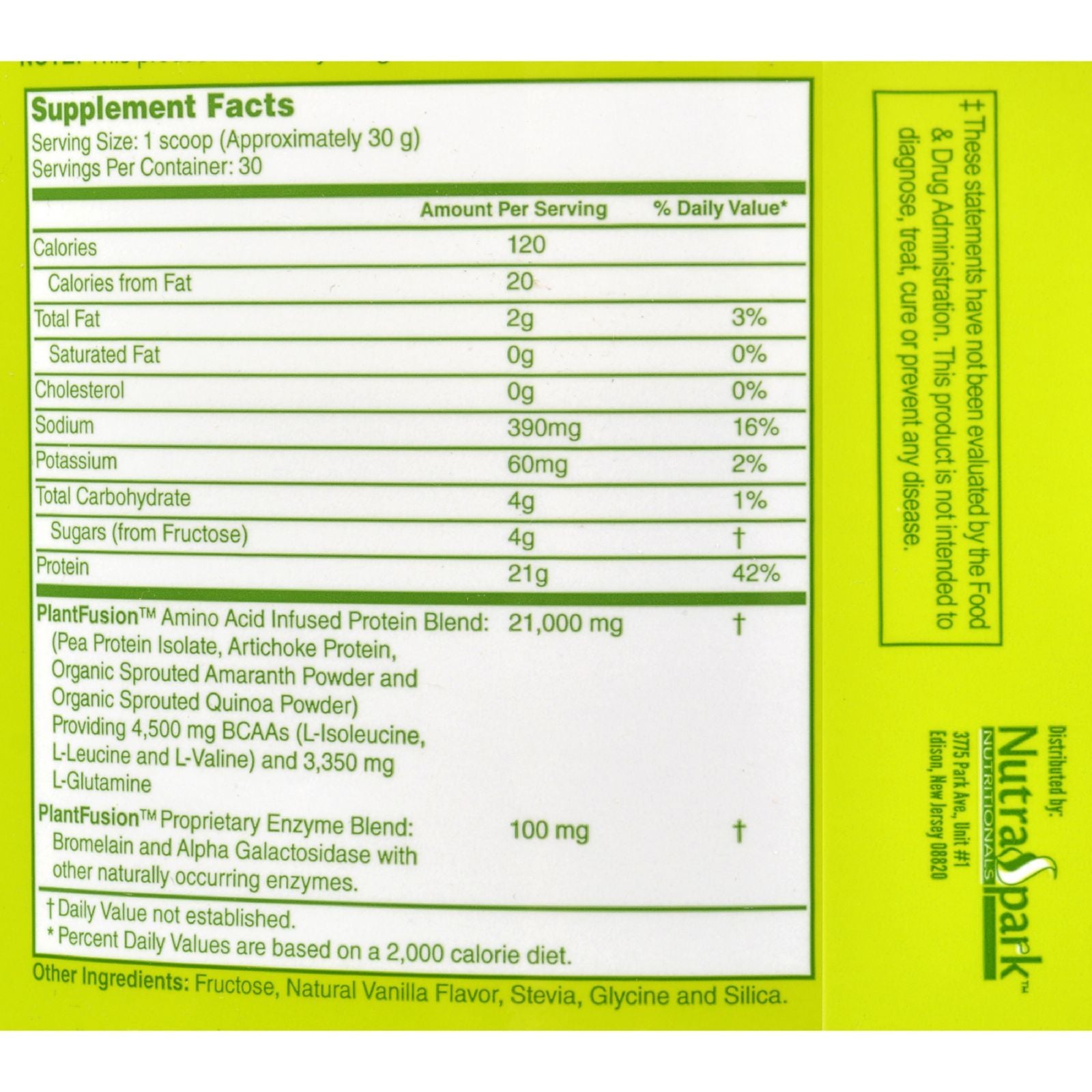 PLANTFUSION VANILLA BEAN COMPLETE PLANT PROTEIN IS OUR QUICK AND EASY SHAKE MADE WITH OPTIMAL NUTRITION IN MIND. OUR PRODUCT IS PACKED WITH 21 G. OF PROTEIN PER SERVING AND IS GLUTEN-FREE. ADDITIONALLY, OUR PRODUCT CONTAINS NO PRESERVATIVES OR ARTIFICIAL FLAVORS. INCLUDED IS ONE 2 LBS. CONTAINER OF PLANTFUSION VANILLA BEAN COMPLETE PLANT PROTEIN.