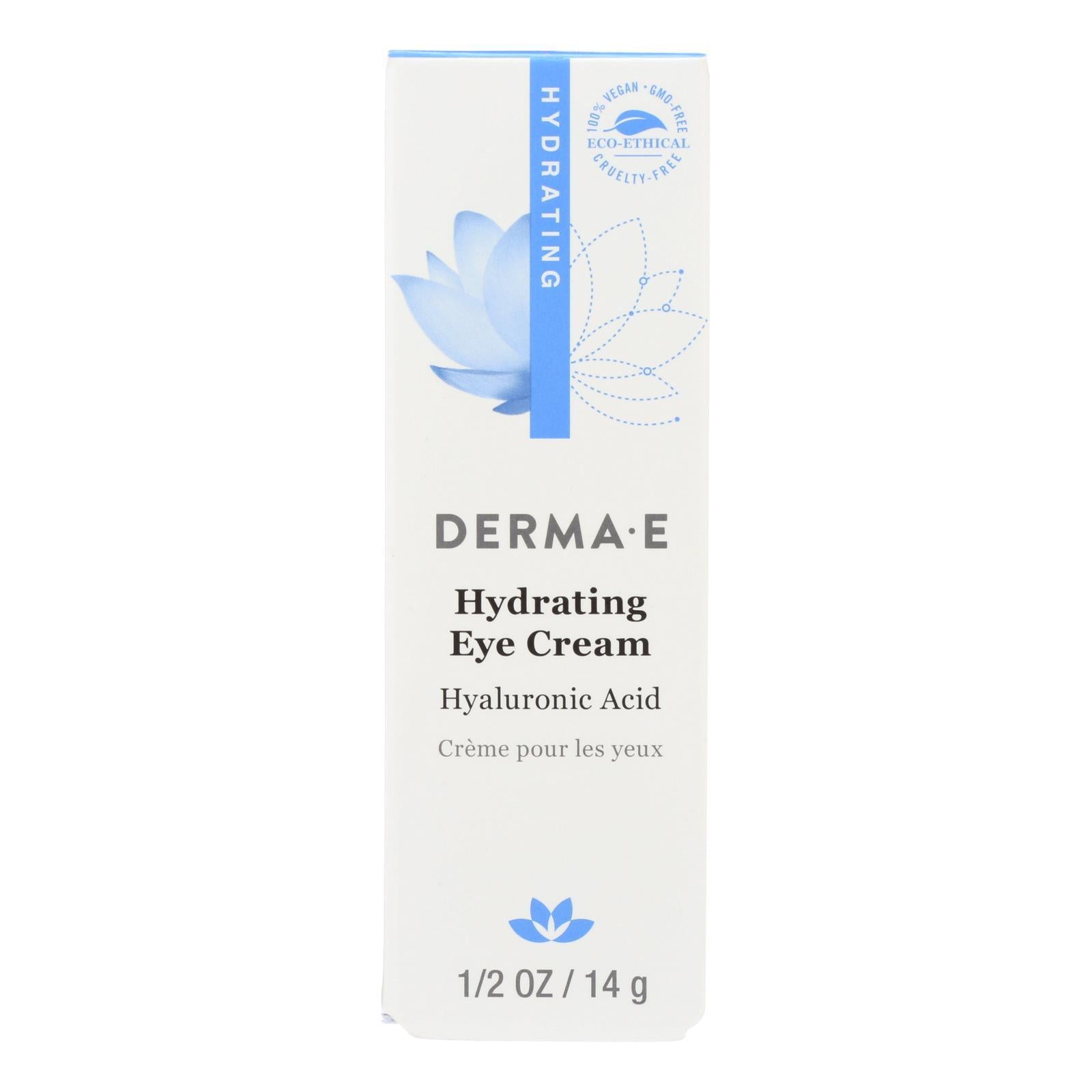 DERMA E, EYE CREME, HYDRATING IS ECO-ETHICAL. THIS PRODUCT IS AN ANTI-AGING EYE CREAM THAT CONTAINS HYDRATING HYALURONIC ACID, ANTIOXIDANT-RICH GREEN TEA, ALONG WITH NOURISHING VITAMINS A, C AND E TO PROMOTE A YOUNGER-LOOKING APPEARANCE. DERMA E, EYE CREME, HYDRATING IS CLINICALLY TESTED, DERMATOLOGIST TESTED AND FRAGRANCE-FREE. DERMA E, EYE CREME, HYDRATING IS 100% VEGAN, CRUELTY-FREE AND DOES NOT CONTAIN GLUTEN, SOY OR GMOS AND COMES IN A 14 G. BOX. SEE DRUG FACTS PANEL FOR WARNINGS.