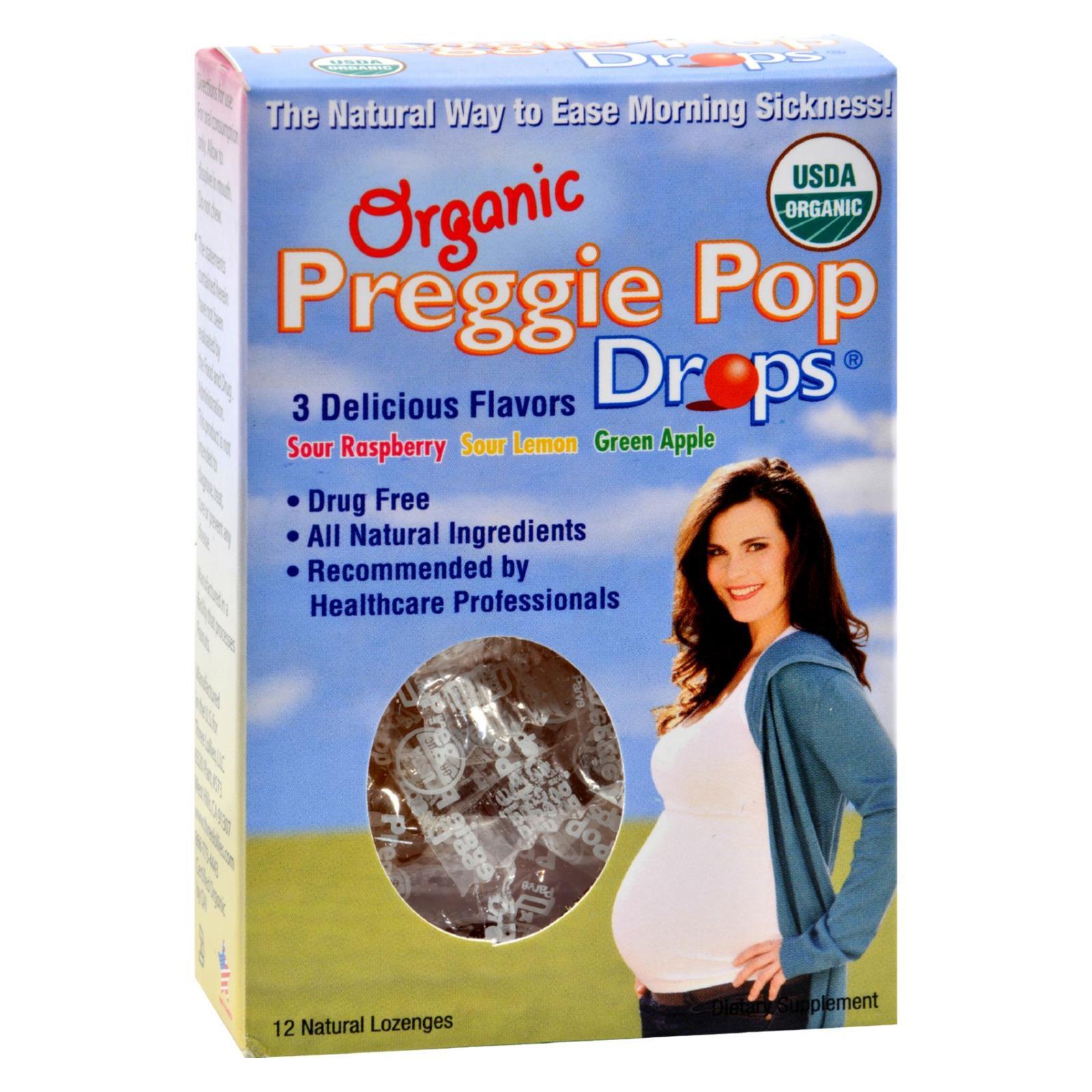 Dietary Supplement. 3 delicious flavors: sour raspberry; sour lemon; green apple. All natural ingredients. The natural way to ease morning sickness! USDA organic. Drug free. Recommended by healthcare professionals. Certified Organic: Quality Assurance International. www.threelollies.com. Certified organic by QAI. Developed by healthcare professionals to provide relief from morning sickness. Preggie Pop Drops are effective due to our special formulation of essential oils, aromatherapy and a unique delivery method. Preggie Pop Drops are also a great addition to your labor bag to help with dry mouth and provide a nice energy boost. Vegan. Gluten free. Pesticide free. Certified organic by ICO. GMO free. (The statements contained herein have not been evaluated by the Food and Drug Administration. This product is not intended to diagnose, treat, cure or prevent any disease.) Manufactured in the US. Made in America. Product of the USA.