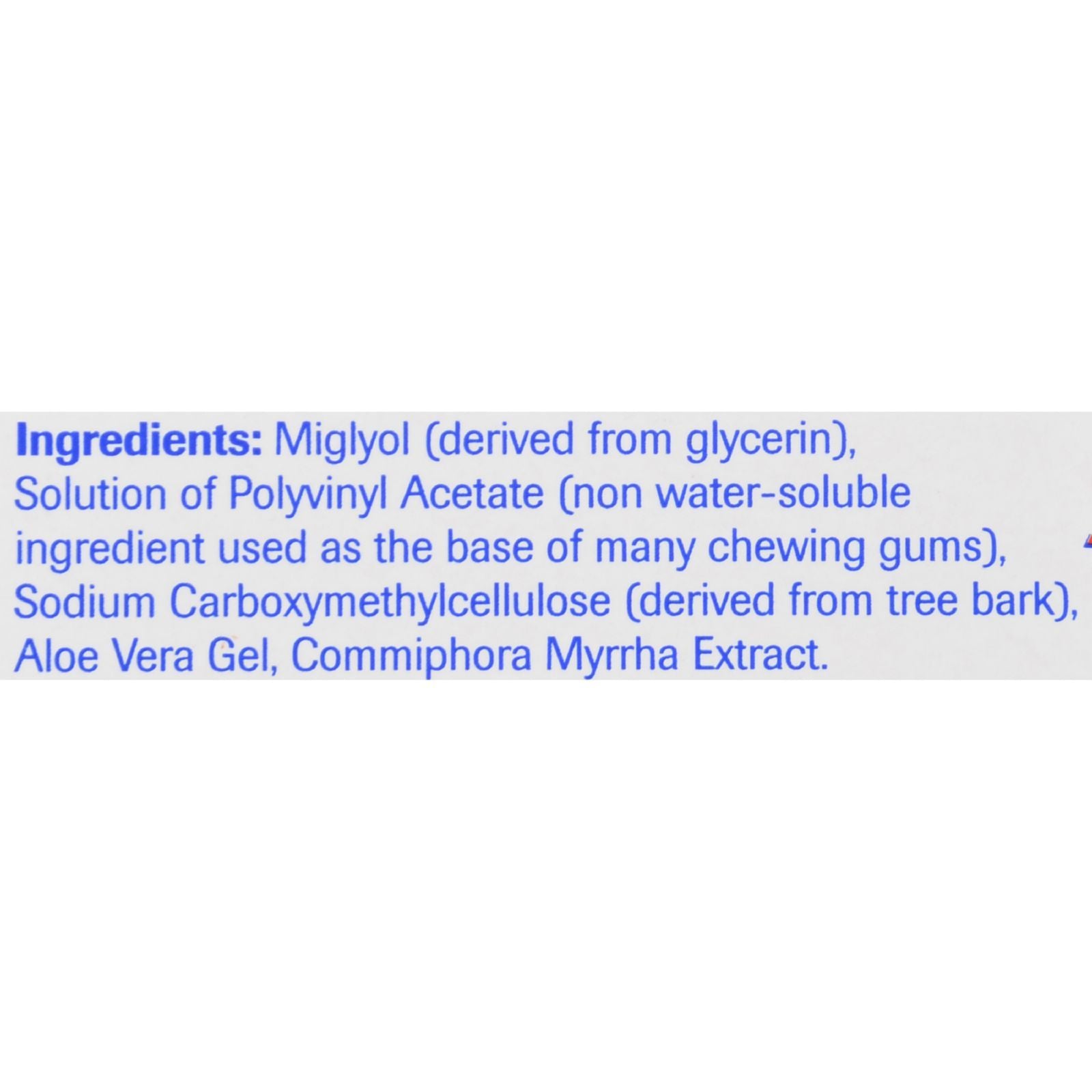 - Ingredients: MIGLYOL;DERIVED FROM GLYCERIN;SOLUTION OF POLYVINYL ACETATE;NON WATER-SOLUBLE INGREDIENT USED AS THE BASE OF MANY CHEWING GUMS;SODIUM CARBOXYMETHYLCELLULOSE;DERIVED FROM TREE BARK;ALOE VERA GEL;COMMIPHORA MYRRHA EXTRACT