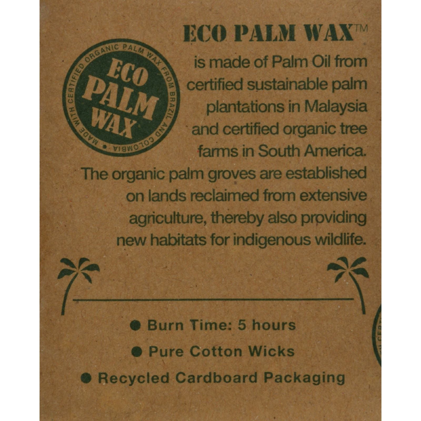 Aloha Bay Palm Wax Tea Lights with Aluminum Holder Cream Description: 12 - Tea Light Candles 100% Vegetable Palm Wax Unscented Exceptionally Clean Burning Pure Cotton Wick Hand Poured in Indonesia Long Burning: More than 5 Hours Disclaimer These statements have not been evaluated by the FDA. These products are not intended to diagnose, treat, cure, or prevent any disease.