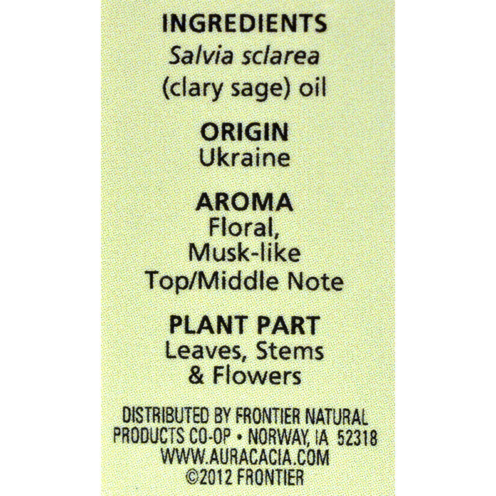 AURA CACIA ESSENTIAL OIL, CLARY SAGE IS A FLORAL, MUSK-LIKE OIL THAT HAS A BALANCING PROPERTY. THIS RICH OIL IS PERFECT IN A SKIN REFRESHER. THIS 100% PURE ESSENTIAL OIL MUST BE DILUTED PROPERLY SINCE IT MAY IRRITATE THE SKIN. EACH BOTTLE OF AURA CACIA ESSENTIAL OIL, CLARY SAGE CONTAINS 0.5 FL. OZ. OF PRODUCT. SEE LABEL FOR WARNINGS.