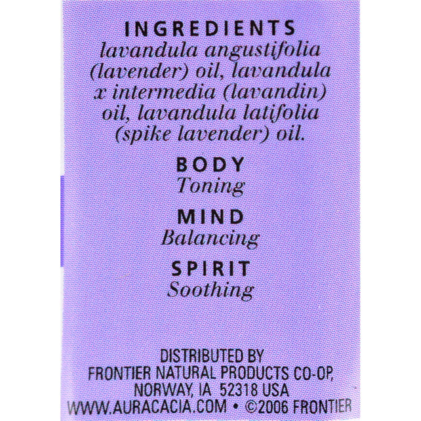 AURA CACIA LAVENDER HARVEST ESSENTIAL OIL BLEND IS A PURE AROMATHERAPY EXPERIENCE. MADE WITH LAVENDER OIL, LAVANDIN OIL AND SPIKE LAVENDER OIL, THIS RELAXING BLEND OF ESSENTIAL OIL IS PERFECT IN A SOOTHING BATH AND IN A CALMING DIFFUSER. TONE THE BODY, BALANCE THE MIND AND SOOTHE THE SPIRIT WITH THIS RICH ESSENTIAL OIL. EACH BOTTLE OF AURA CACIA LAVENDER HARVEST ESSENTIAL OIL BLEND CONTAINS 0.5 FL. OZ. OF 100% PURE ESSENTIAL OIL. SEE LABEL FOR WARNINGS.