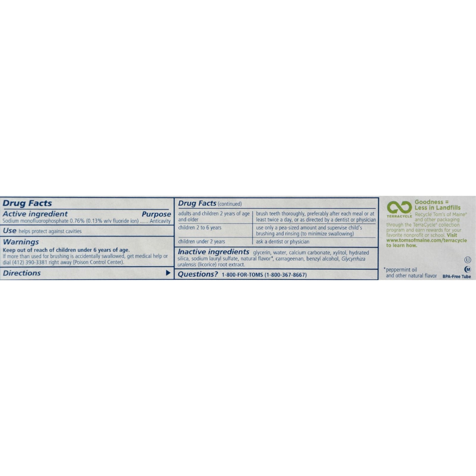 - Ingredients: ACTIVE INGREDIENT SODIUM MONOFLUOROPHOSPHATE 0;76% (0.13% W/V FLUORIDE ION) PURPOSE ANTICAVITY INACTIVE GLYCERIN;WATER;CALCIUM CARBONATE;XYLITOL;HYDRATED SILICA;SODIUM LAURYL SULFATE;NATURAL FLAVOR;CARRAGEENAN;BENZYL ALCOHOL;GLYCYRRHIZA URALENSIS (LICORICE) ROOT EXTRACT