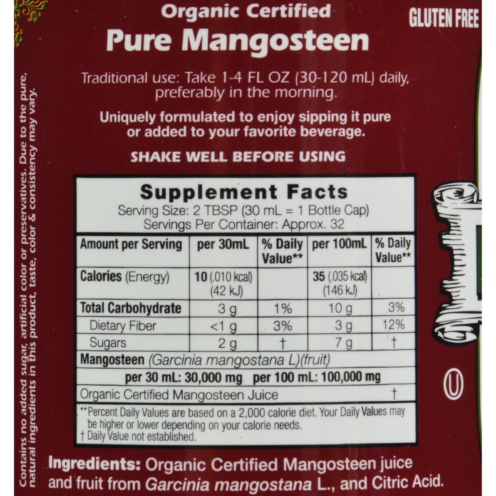 - Ingredients: CERTIFIED ORGANIC MANGOSTEEN PUREE WITH PERICARP;FILTERED WATER AND CITRIC ACID