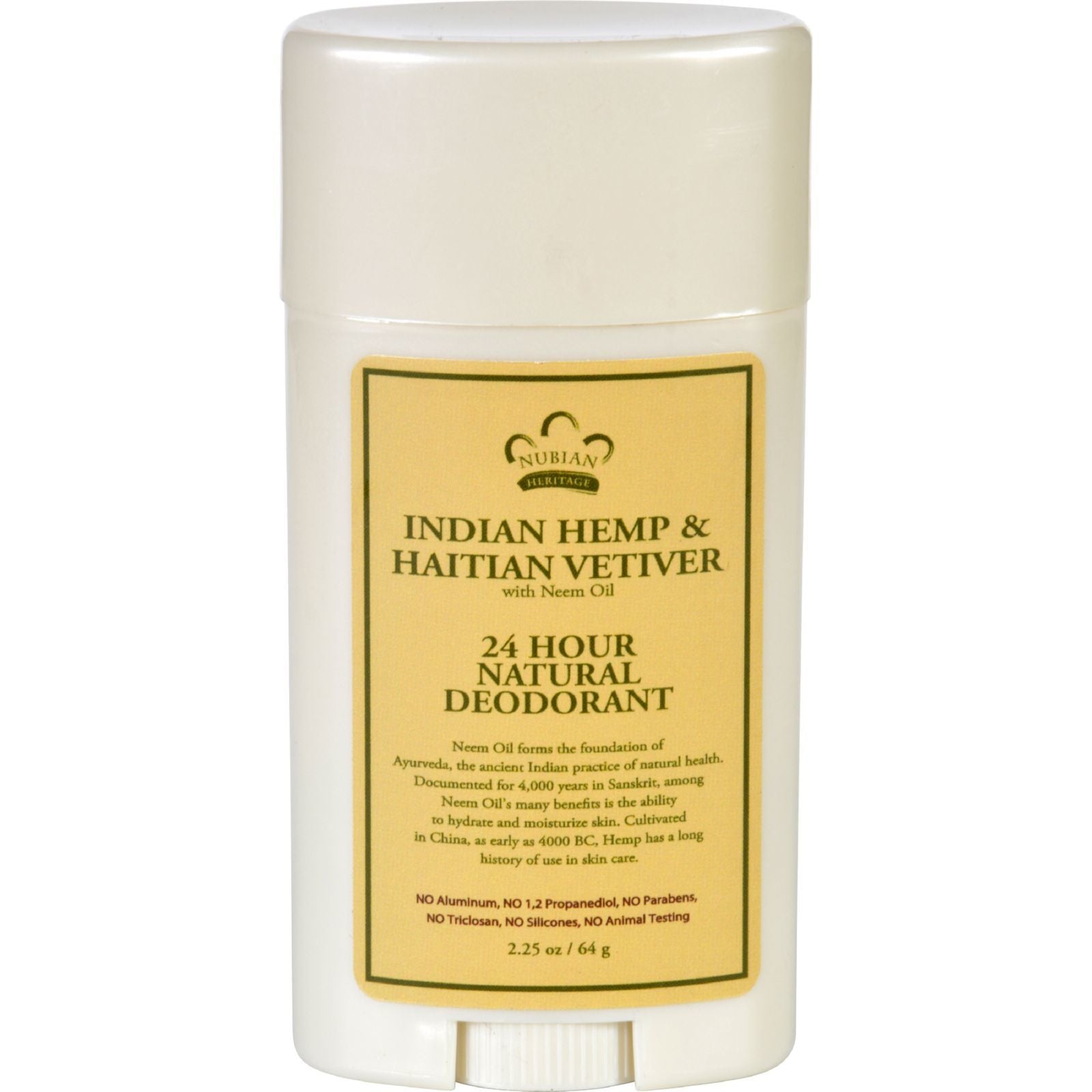 Nubian Heritage Deodorant - All Natural - 24 Hour - Indian Hemp and Haitian Vetiver - with Neem Oil - 2.25 oz