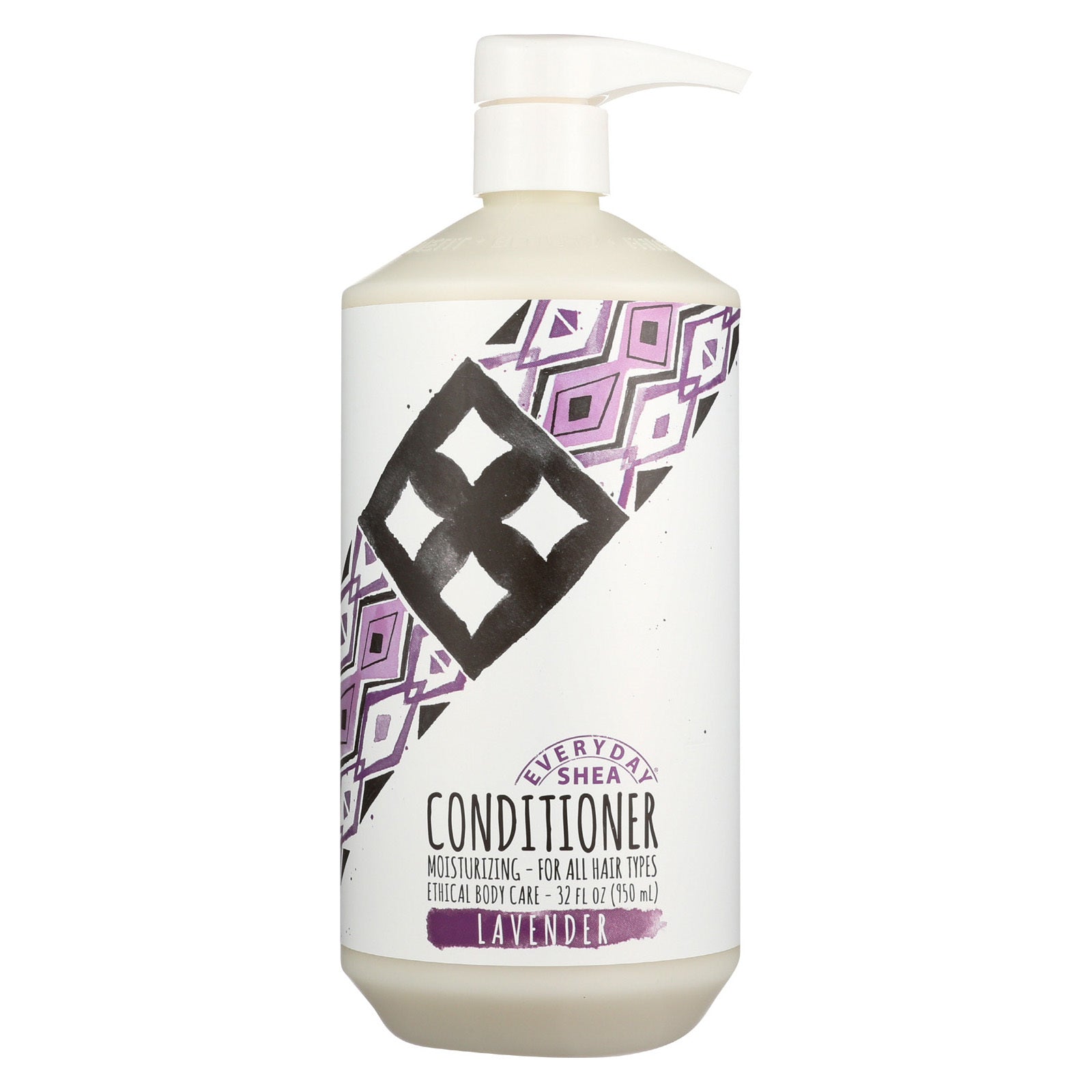 EVERYDAY SHEA CONDITIONER MOISTURIZING LAVENDER WORKS FOR ALL HAIR TYPES. OUR CONDITIONER IS FREE OF PARABENS, SYNTHETIC FRAGRANCES AND GLUTEN. BECAUSE WE ARE COMMITTED TO ETHICAL BODY CARE, WE DO NOT TEST ON ANIMALS, AND WE USE BIODEGRADABLE PACKAGING. THIS BOTTLE CONTAINS 32 FL. OZ. OF MOISTURIZING CONDITIONER.