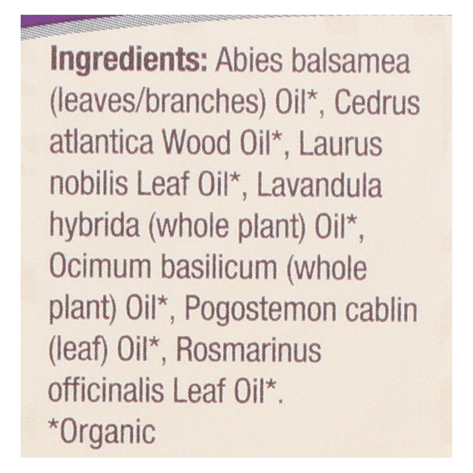 - Ingredients: ABIES BALSAMEA;LEAVES/BRANCHES;OIL;CEDRUS ATLANTICA WOOD OIL;LAURUS NOBILIS LEAF OIL;LAVANDULA HYBRIDA;WHOLE PLANT;OCIMUM BASILICUM;POGOSTEMON CABLIN;LEAF;ROSMARINUS OFFICINALIS LEAF OIL