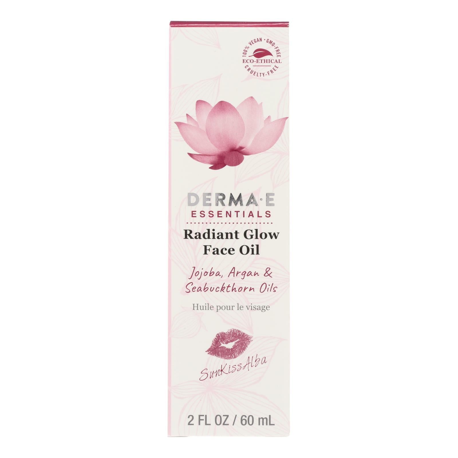 DERMA-E RADIANT GLOW FACE OIL WORKS GENTLY TO REVEAL THE NATURAL RADIANCE AND PURITY OF YOUR SKIN. DERMA-E RADIANT GLOW FACE OIL IS GENTLE ENOUGH FOR REGULAR USE AND WON'T CLOG YOUR PORES. BY USING NATURAL INGREDIENTS, LIKE MOISTURIZING ARGAN AND JOJOBA OILS, DERMA-E RADIANT GLOW FACE OIL WORKS TO GENTLY PURIFY AND RESTORE NUTRIENTS TO YOUR SKIN. THIS PRODUCT IS GLUTEN-FREE, VEGAN FRIENDLY AND MANUFACTURED USING CRUELTY-FREE METHODS. SEE LABEL FOR WARNINGS. INCLUDES ONE 2 FL. OZ. BOTTLE OF DERMA-E RADIANT GLOW FACE OIL.