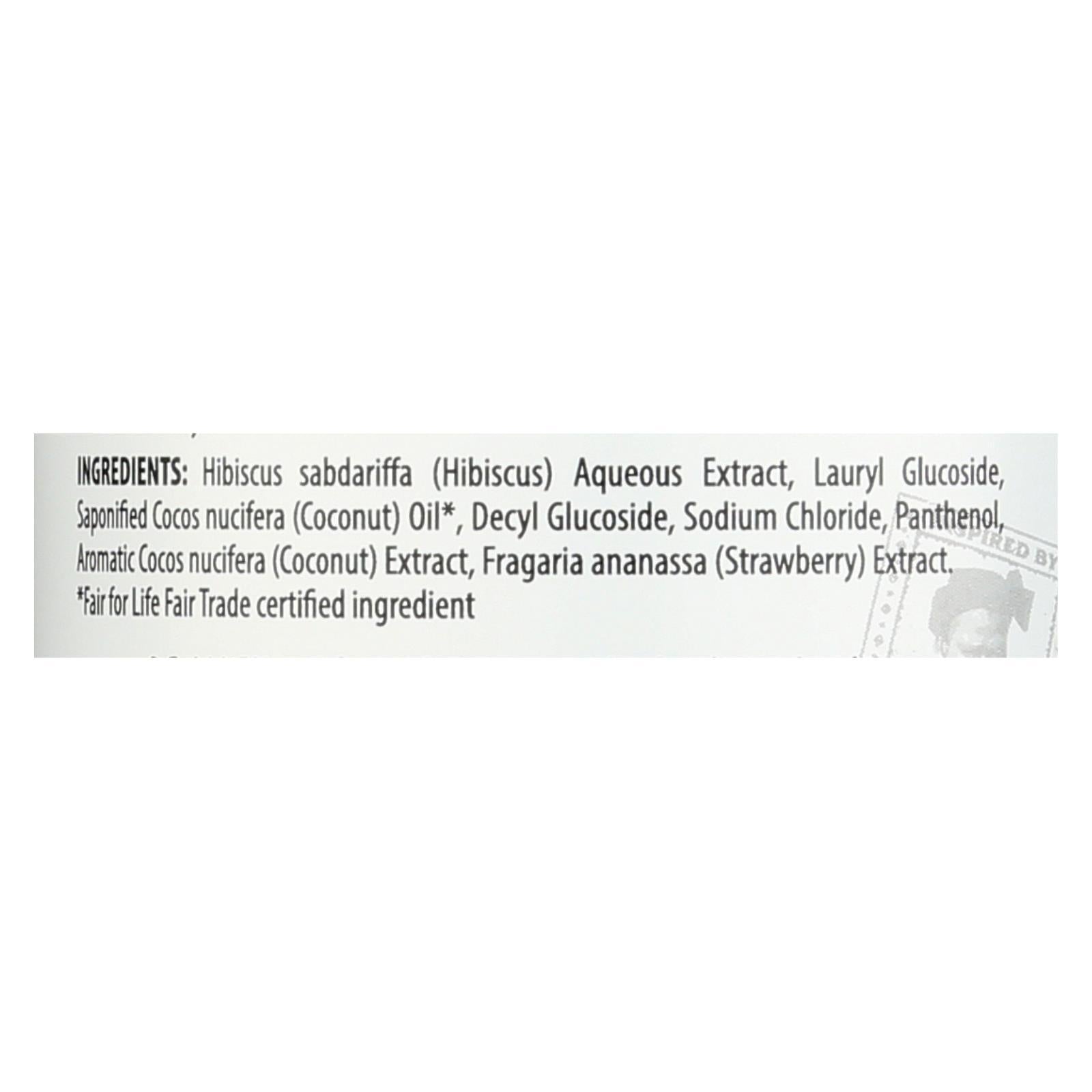 - Ingredients: HIBISCUS SABDARIFFA (HIBISCUS) AQUEOUS EXTRACT;LAURYL GLUCOSIDE;SAPONIFIED COCOS NUCIFERA (COCONUT) OIL;DECYL GLUCOSIDE;SODIUM CHLORIDE;PANTHENOL;COCOS NUCIFERA (COCONUT) EXTRACT;FRAGRANCE
