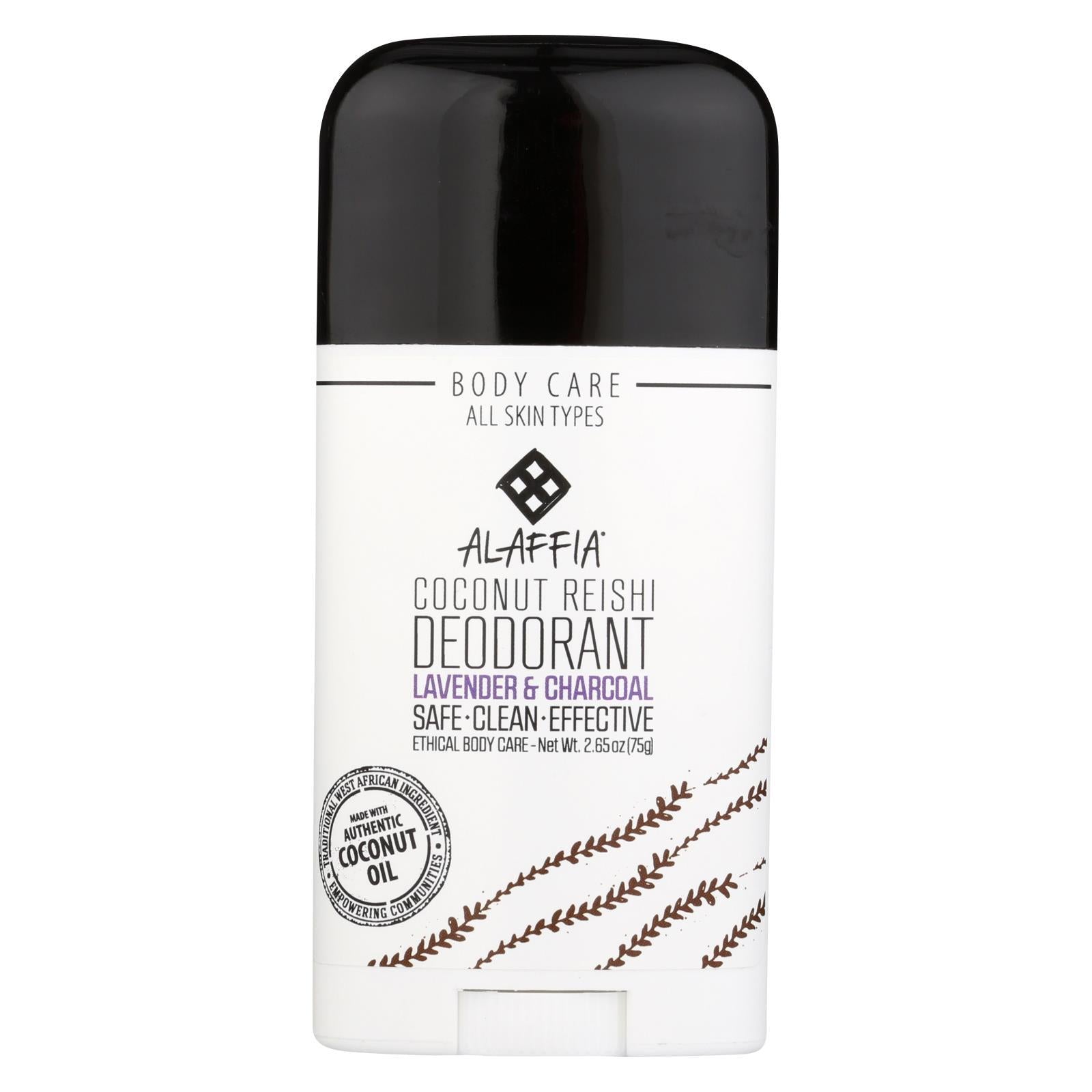 ALAFFIA COCONUT LAVENDER DEODORANT IS AN ALL-NATURAL PERSONAL HYGIENE PRODUCT THAT USES SUCH CERTIFIED FAIR TRADE INGREDIENTS AS COCONUT OIL, SHEA BUTTER, ALOE VERA LEAF JUICE AND ACTIVATED CHARCOAL. IT'S FREE OF PARABENS, PHTHALATES, SULFATES, TRICLOSAN, PETRO CHEMICALS AND ALUMINUM, AND NO ANIMAL TESTING WAS INVOLVED IN ITS DEVELOPMENT. THE DEODORANT COMES IN A 2.65 OZ. UNIT.