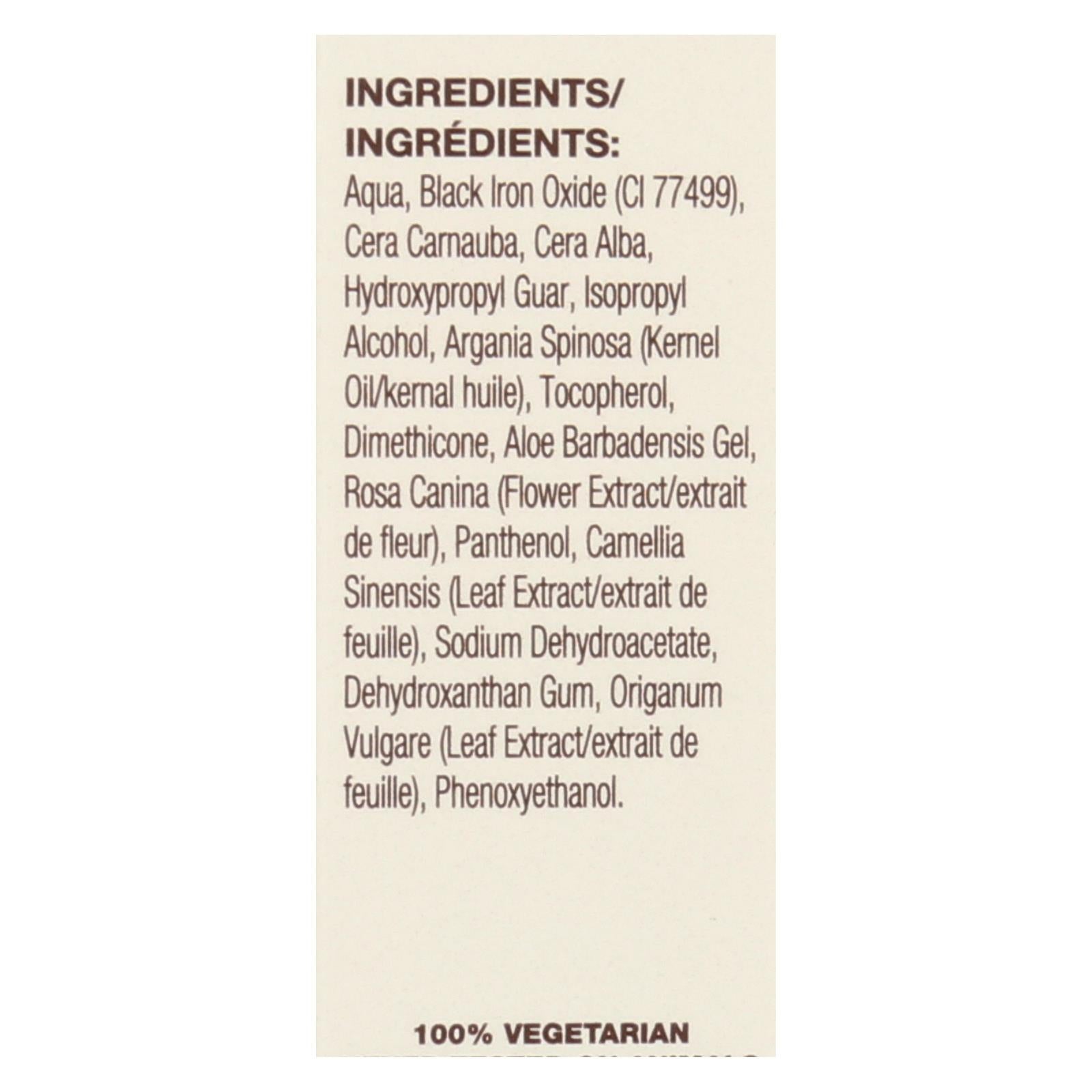 - Ingredients: AQUA;BLACK IRON OXIDE;C1 77499;CERA CARNAUBA;CERA ALBA;HYDROXYPROPYL GUAR;ISOPROPYL ALCOHOL;ARGANIA SPINOSA;KERNEL OIL/KERNAL HUILE;TOCOPHEROL;DIMETHICONE;ALOE BARBADENSIS GEL;ROSA CANINA;FLOWER EXTRACT/EXTRAIT DE FLEUR;PANTHENOL;CAMELLIA SINENSIS;LEAF EXTRACT/EXTRAIT DE FEUILLE;SODIUM DEHYDROACETATE;DEHYDROXANTHAN GUM;ORIGANUM VULGARE;LEFT EXTRACT/EXTRAIT DE FEUILLE;PHENOXYETHANOL